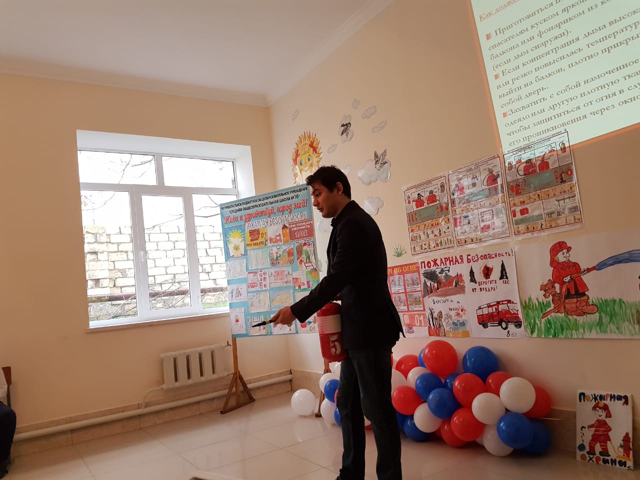 В начале занятия перед учащимися выступила классный руководитель с докладом, доведя до слушателей основы пожарной безопасности. Далее выступил специалист по пожарной безопасности Наврузов Н.А., в свою очередь затронув вопросы пожарной безопасности в период новогодних праздников. Так, в частности, особое внимание школьников было обращено при пользовании средствами пиротехники, в том числе их предостерегли от покупки несертифицированной пиротехники. Кроме того, школьникам рассказали о видах огнетушителей, их отличия, правила применения, преимущества и недостатки каждого в отдельности. По окончании занятия школьникам вручили буклеты и памятки по противопожарной безопасности в новогодние праздники.