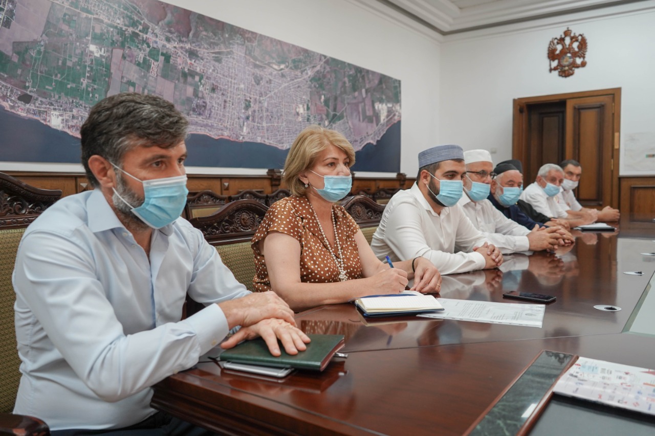 Сегодня, 17 августа, глава города Рустамбек Пирмагомедов, его заместитель Видади Зейналов при участии представителей правоохранительных органов и надзорного ведомства санитарно-эпидемиологического контроля провели совещание с представителями религиозных конфессий города. На встрече обсуждались вопросы противоэпидемиологических мер и ограничения при проведении религиозных обрядов.