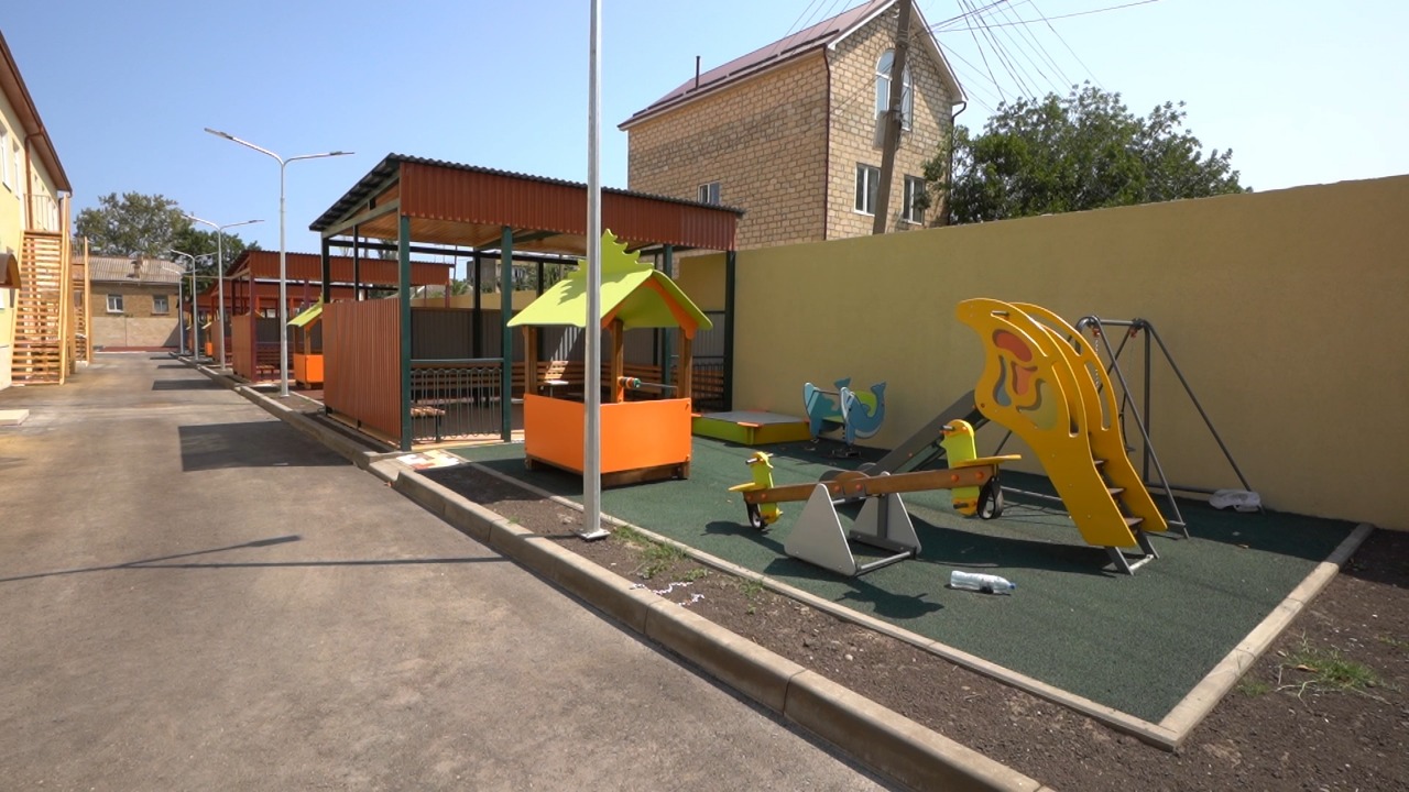 Спальные и игровые комнаты в группах выкрашены в светлые тона, в санузлах уложена красивая плитка. Прилегающая территория детского сада также отремонтирована в установленные сроки. Во дворе оборудованы игровые площадки и уютные беседки для каждой группы.