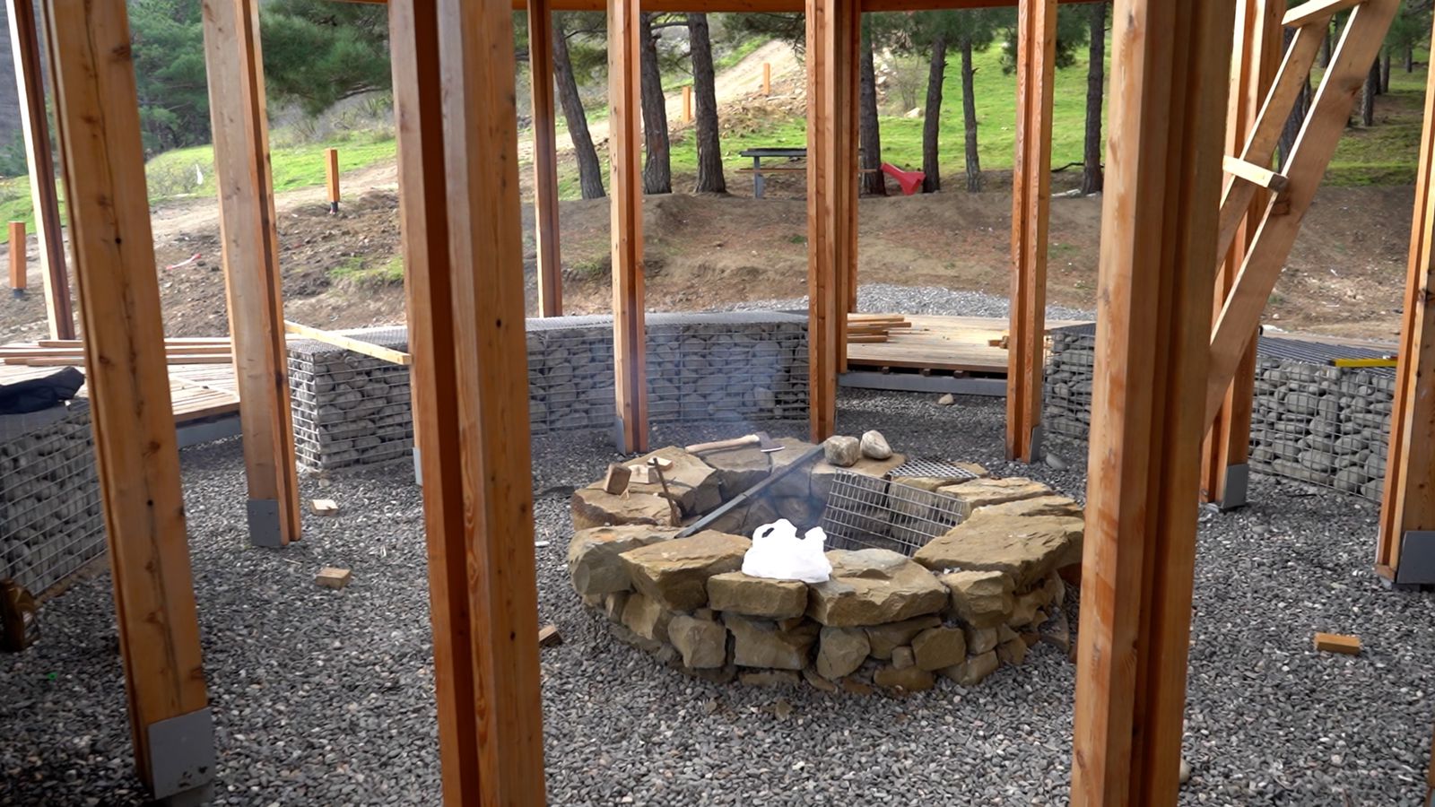 На сегодняшний день завершаются работы по обустройству детских площадок, пешеходных зон, территорий для кемпинга и «Источника», именуемого как домик лесника. Также идёт создание смотровых площадок и кострищ.