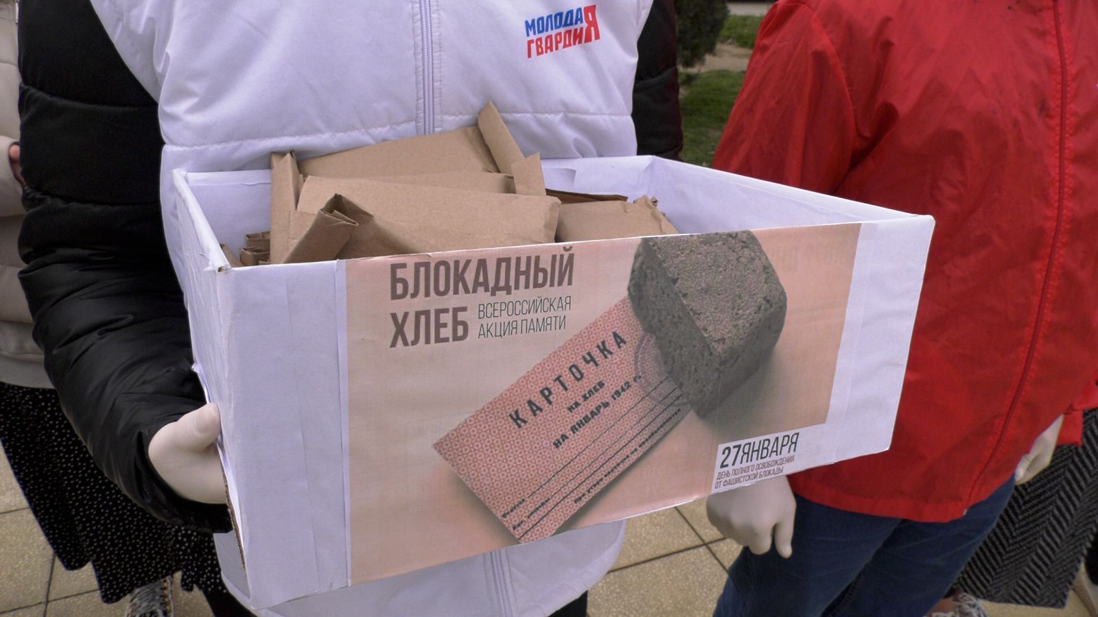 В ходе мероприятия волонтерами города была проведена акция «Блокадный хлеб». Участникам митинга и прохожим раздали хлеб весом в 125 грамм, как напоминание о страшных днях блокады Ленинграда.