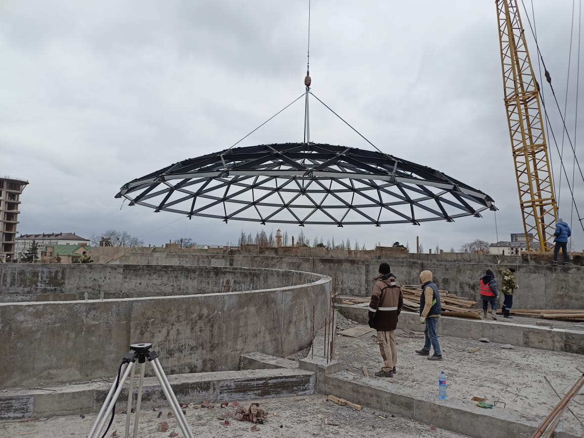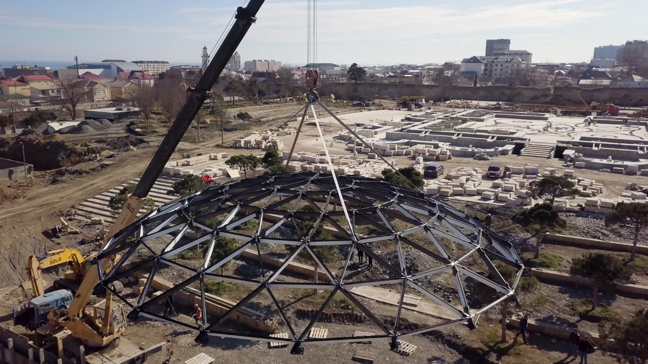 В парке им. Низами Гянджеви установили уникальную купольную конструкцию на кровлю библиотеки. Технологический процесс разделен на 3 этапа. Работы реализует подрядная организация ООО «СК ДАК».