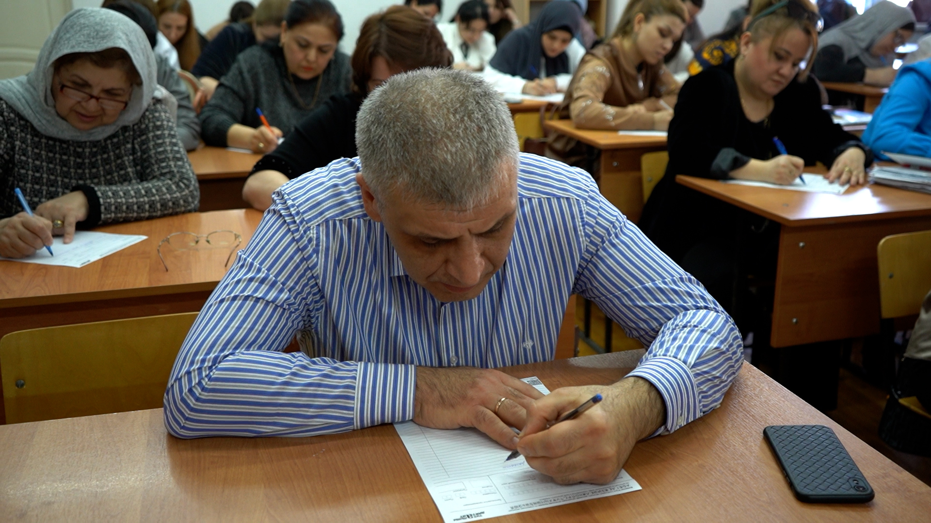 Заместитель главы Дербента Видади Зейналов пожелал успехов участникам диктанта и отметил, что это масштабное мероприятие, посвящённое русскому языку и грамотности.