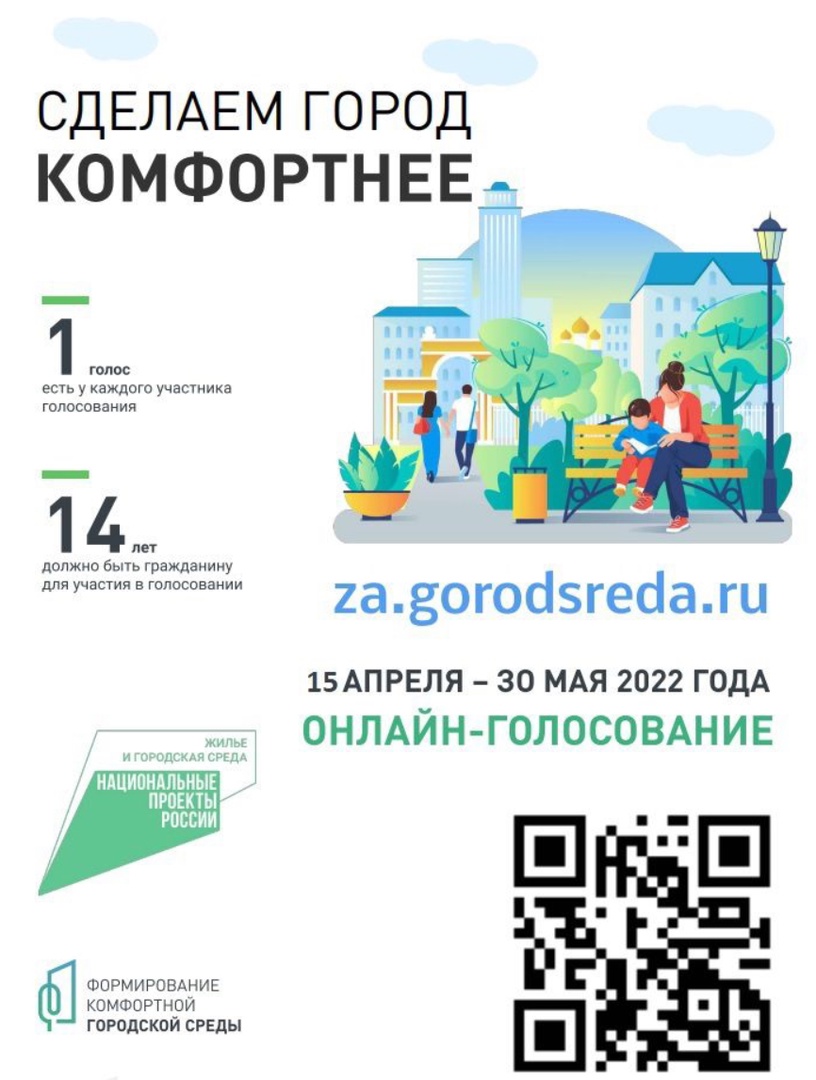 С 15 апреля по 30 мая пройдет онлайн-голосование по выбору дизайн-проектов благоустройства общественных территорий и по отбору общественных территорий, подлежащих благоустройству в 2023 году в рамках реализации федерального проекта «Формирование комфортной городской среды» на территории страны.