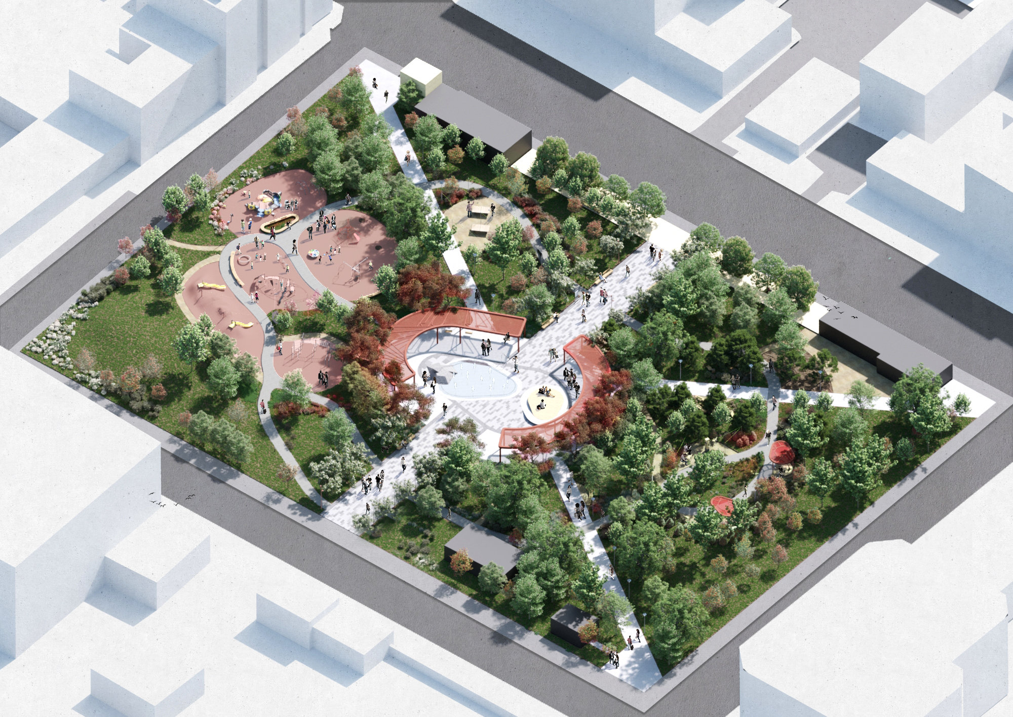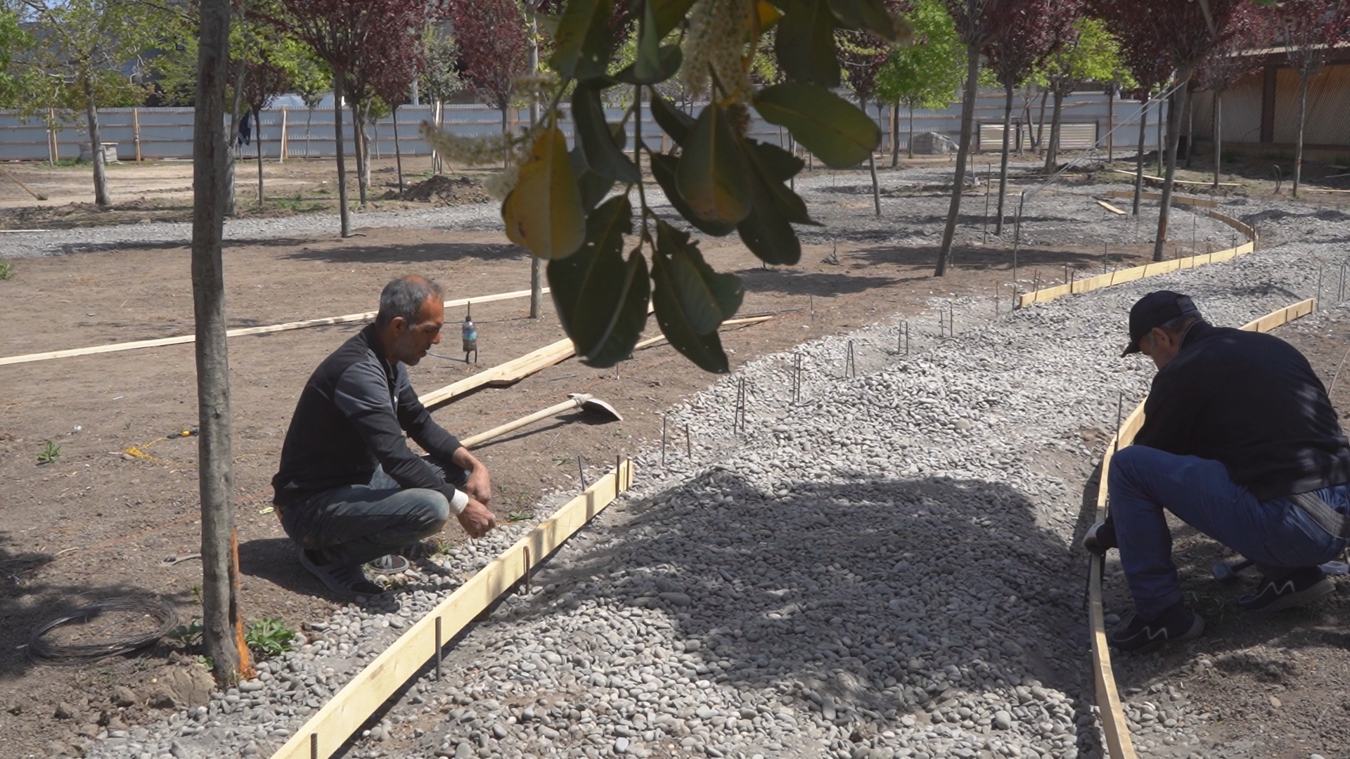 На территорию парка завезены зеленые насаждения, гранитная плитка для дорожек. Заключен контракт на монтаж фонтана.