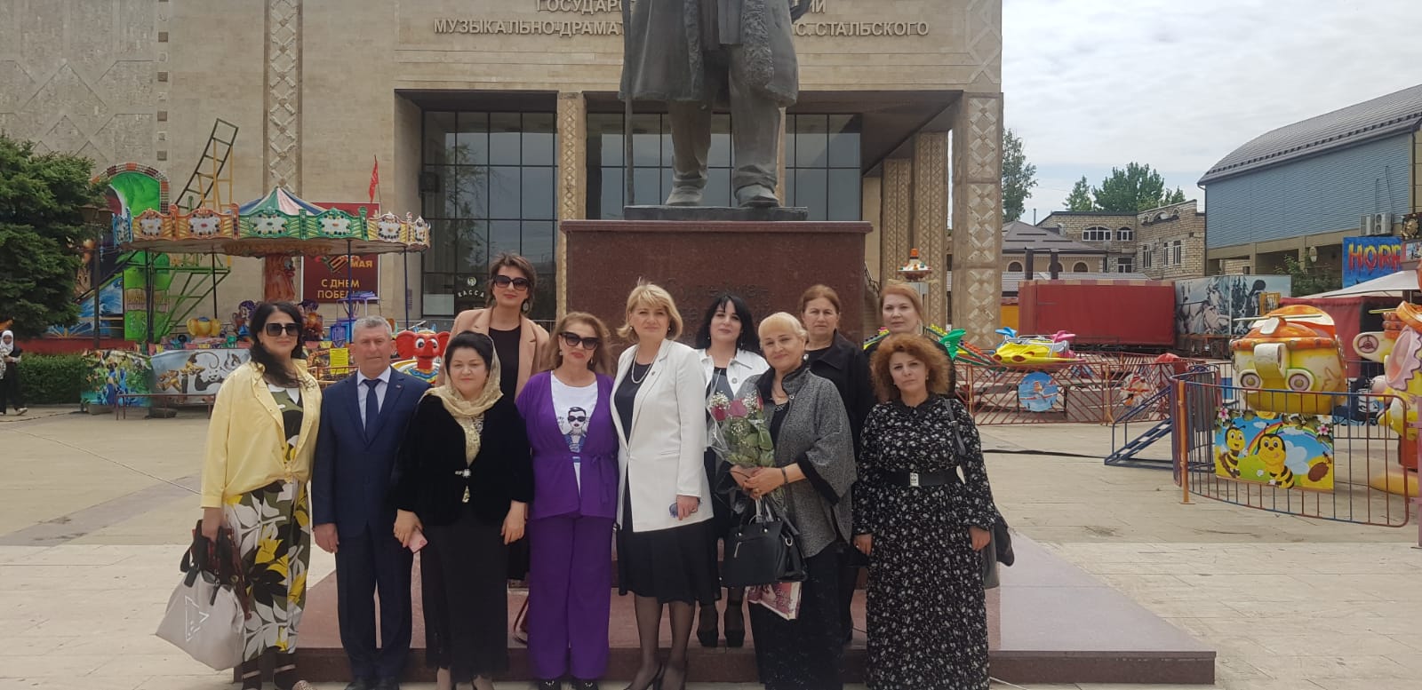 В завершении мероприятия все участники прошлись к зданию лезгинского театра и в знак уважения к великом поэту возложили цветы к памятнику Сулеймана Стальского.