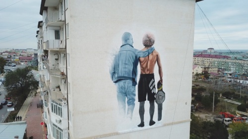 Хабиб Нурмагомедов осмотрел настенное граффити с изображением себя и отца в Дербенте